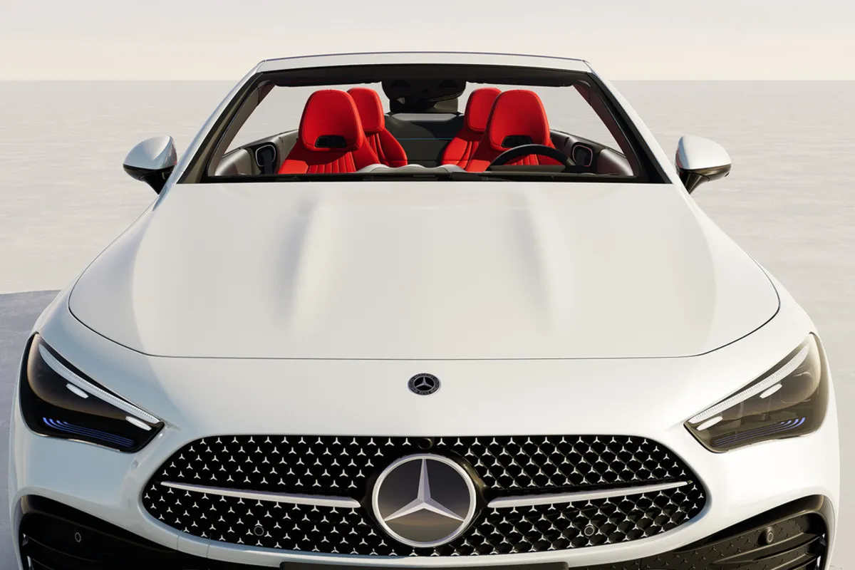 Вражає з першого погляду: глибоко посаджений капот і А-подібна решітка радіатора з фірмовим патерном Mercedes-Benz формують впізнаваний силует кабріолета CLE. Силові вертикальні виступи на капоті підкреслюють спортивність і додають характеру передній частині, створюючи виразний і неповторний зовнішній вигляд.