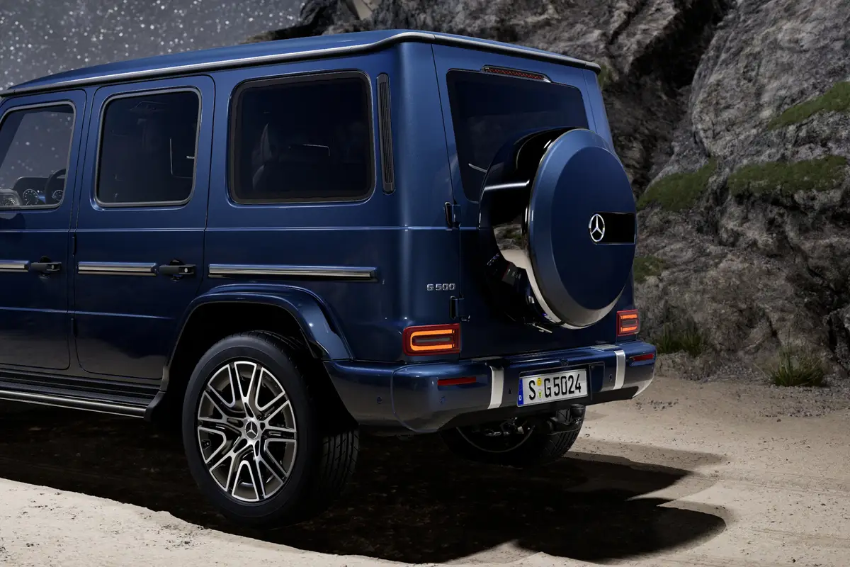З першого погляду G-Wagen заявляє про готовність до пригод: міцна й ефективна конструкція передньої частини та новий дизайн решітки радіатора підкреслюють силу моделі. Вишуканий вигляд обвісу кузова посилює її культовий статус, роблячи образ ще більш виразним і переконливим на дорозі.
