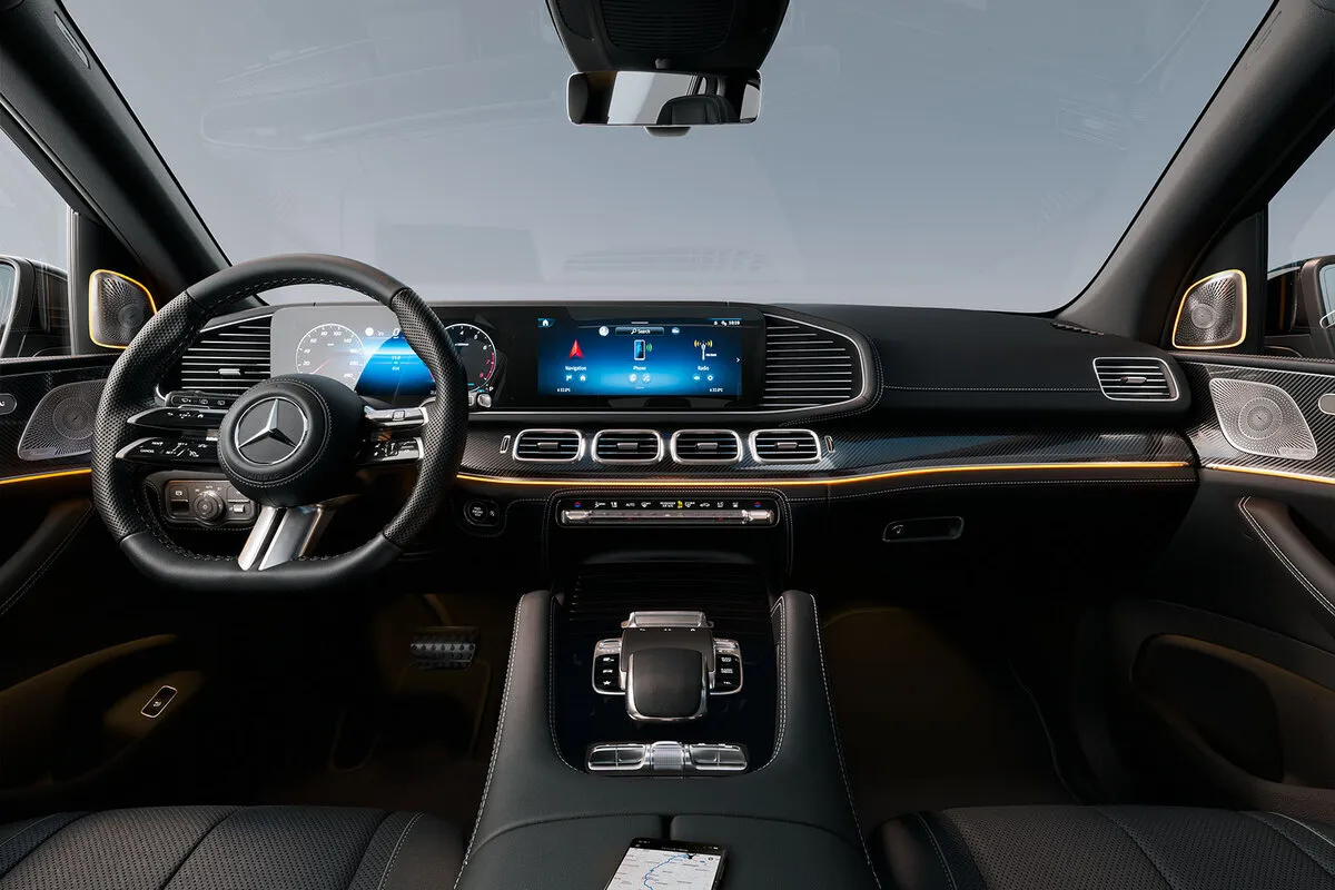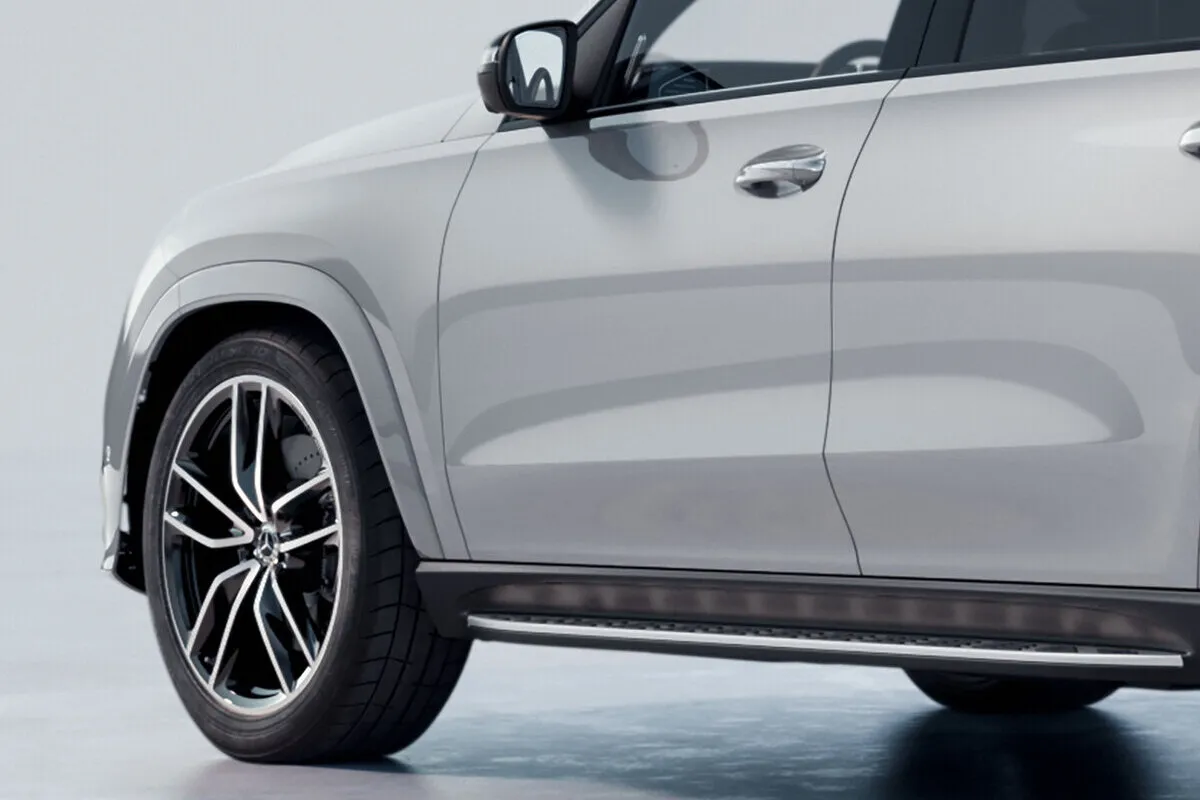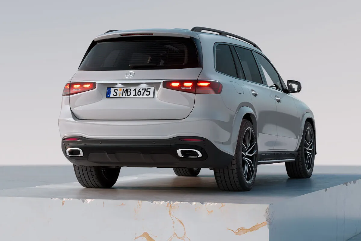 Впевнений силует GLS формують широка решітка, рельєфний капот і виразні колісні арки. Пропорції зі зменшеними звісами підкреслюють керованість, а хромовані акценти додають статусу. Разом вони створюють стриманий, але переконливий образ флагмана, готового до тривалих подорожей або щоденних маршрутів.