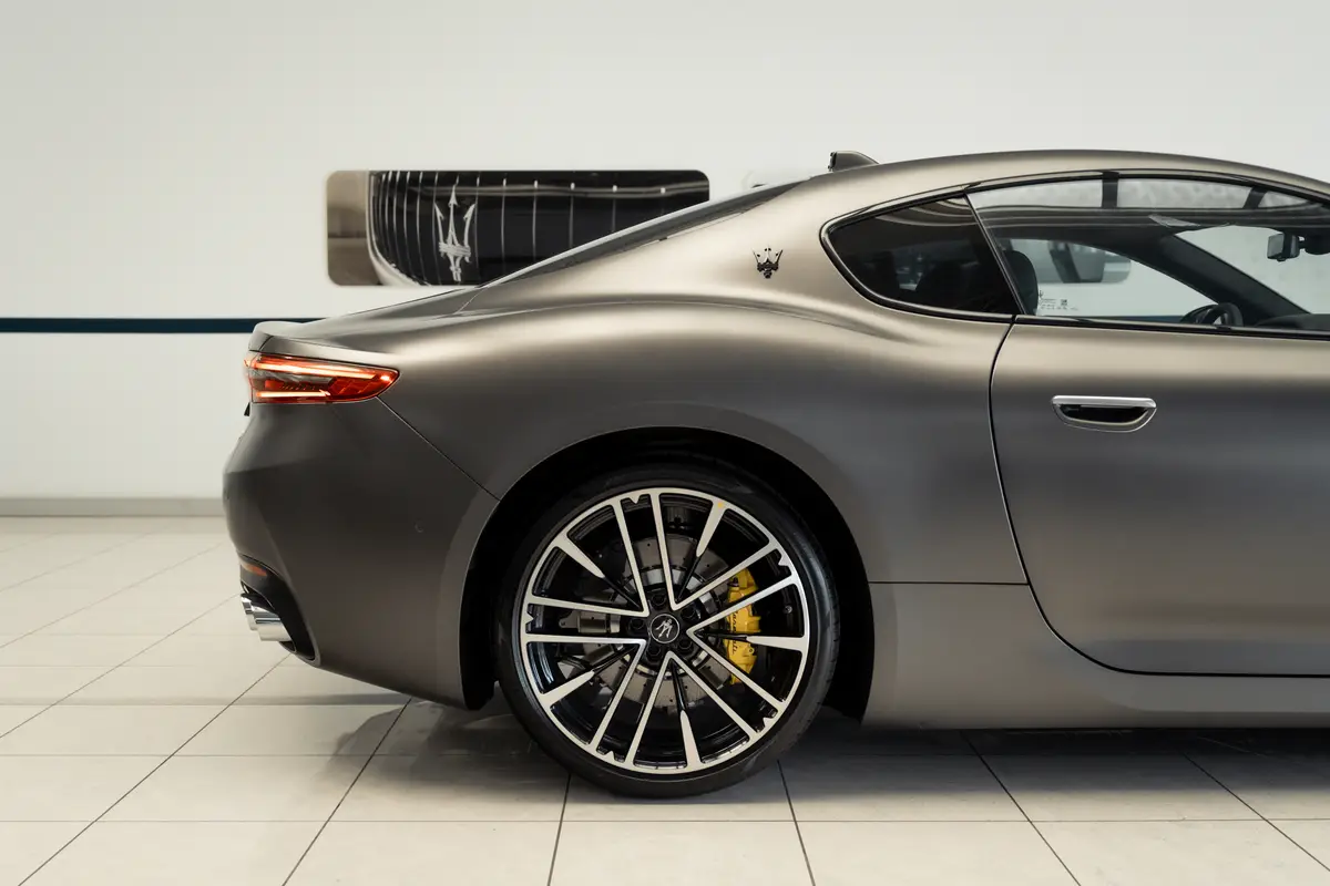Гармонійні пропорції кузова, видовжений капот і плавна лінія даху створюють силует, що поєднує спортивність і вишуканість. Дизайн відсилає до класичних Maserati, але зберігає сучасний динамічний характер. У цих лініях відчуваються італійські традиції майстерності та уваги до деталей, які дарують відчуття розкоші й ексклюзивності. GranTurismo підкреслює індивідуальність власника.