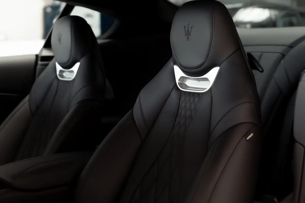 Задні ліхтарі з поєднанням форм бумеранга та гарпуна створюють впізнаваний світловий підпис, який миттєво вирізняє GranTurismo в потоці. У цій оптиці відчувається італійська школа майстерності з ювелірною графікою та увагою до деталей. Це не просто освітлення, а витончений штрих розкоші й ексклюзивності, що щоразу підкреслює ідивідуальність, коли купе оживає в темряві.