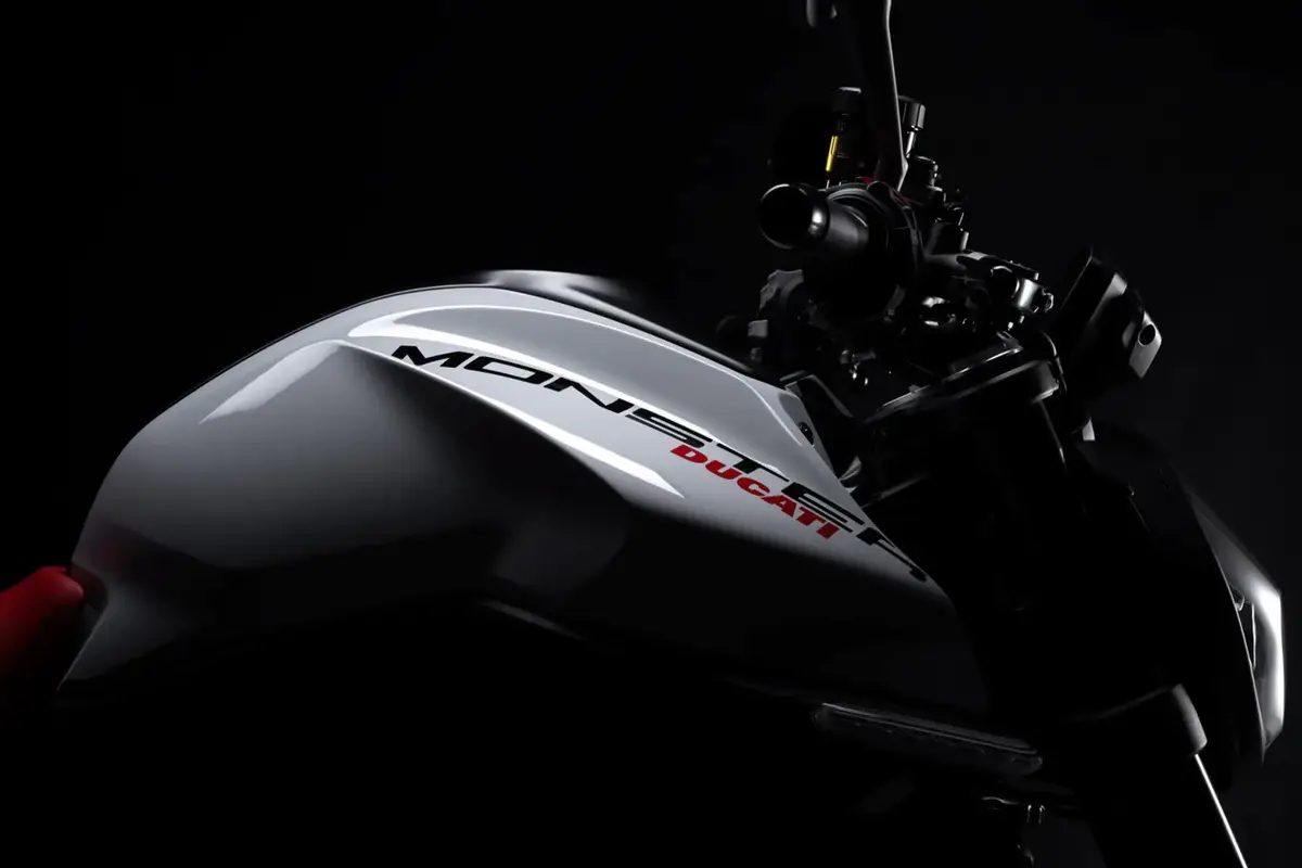 Мінімалістичні лінії, м’язисті пропорції та агресивна постава створюють впізнаваний образ, у якому кожен елемент підкреслює силу та динаміку. Відкриті механічні деталі, компактна задня частина та фірмова LED-оптика формують чисту естетику, яка поєднує спадковість легендарного Monster із сучасним стилем Ducati.
