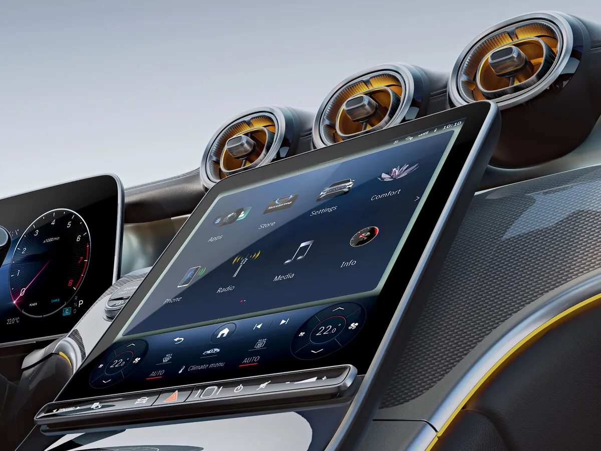 Безступінчасте регулювання амортизації на кожному колесі робить хід особливо плавним. Пневмопідвіска AIRMATIC дозволяє їхати з підвищеним комфортом і спокоєм у будь-яких умовах. За потреби кліренс можна підняти на 15 мм, а система автоматично підлаштовується під різне навантаження автомобіля, зберігаючи стабільність та впевненість у керуванні.