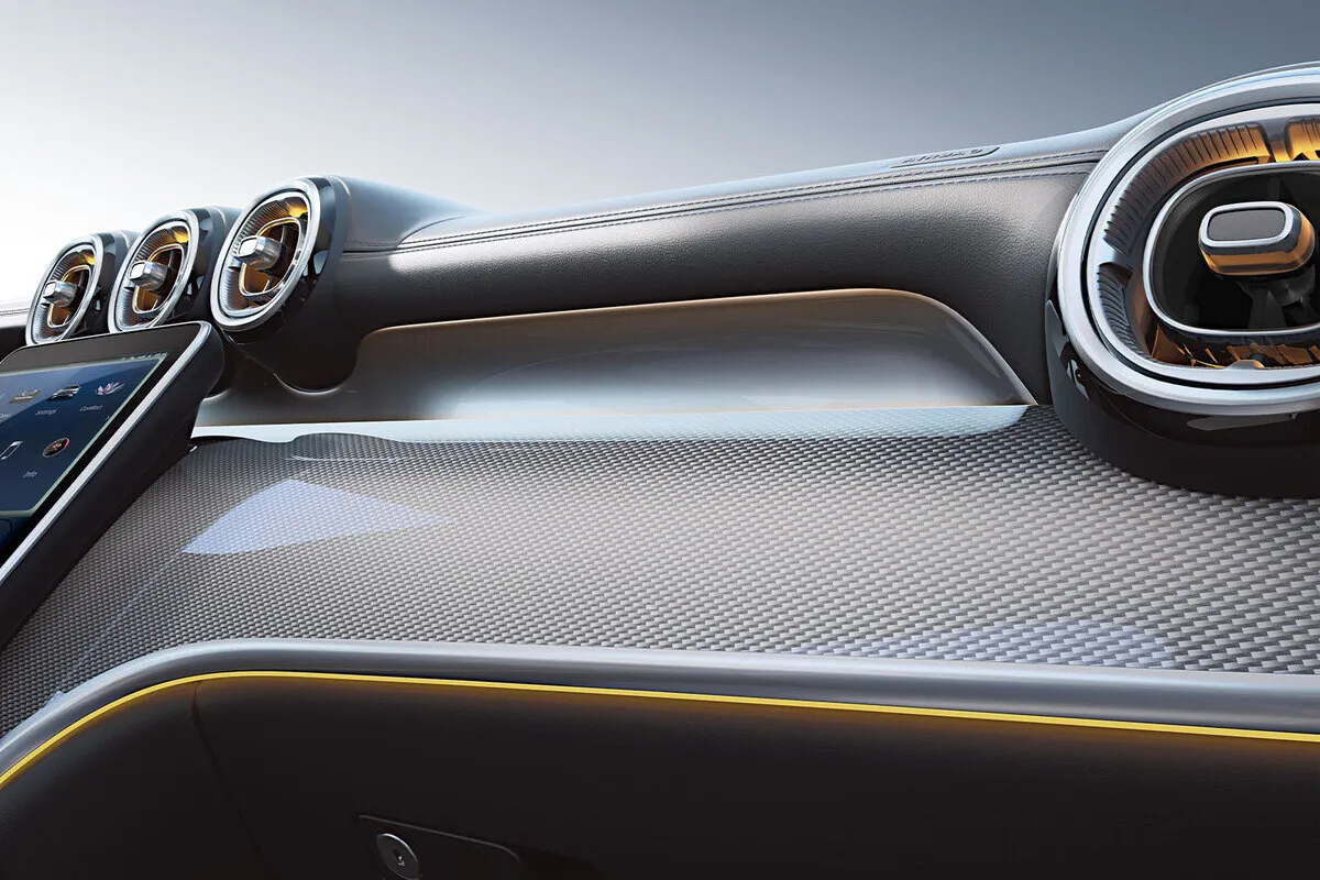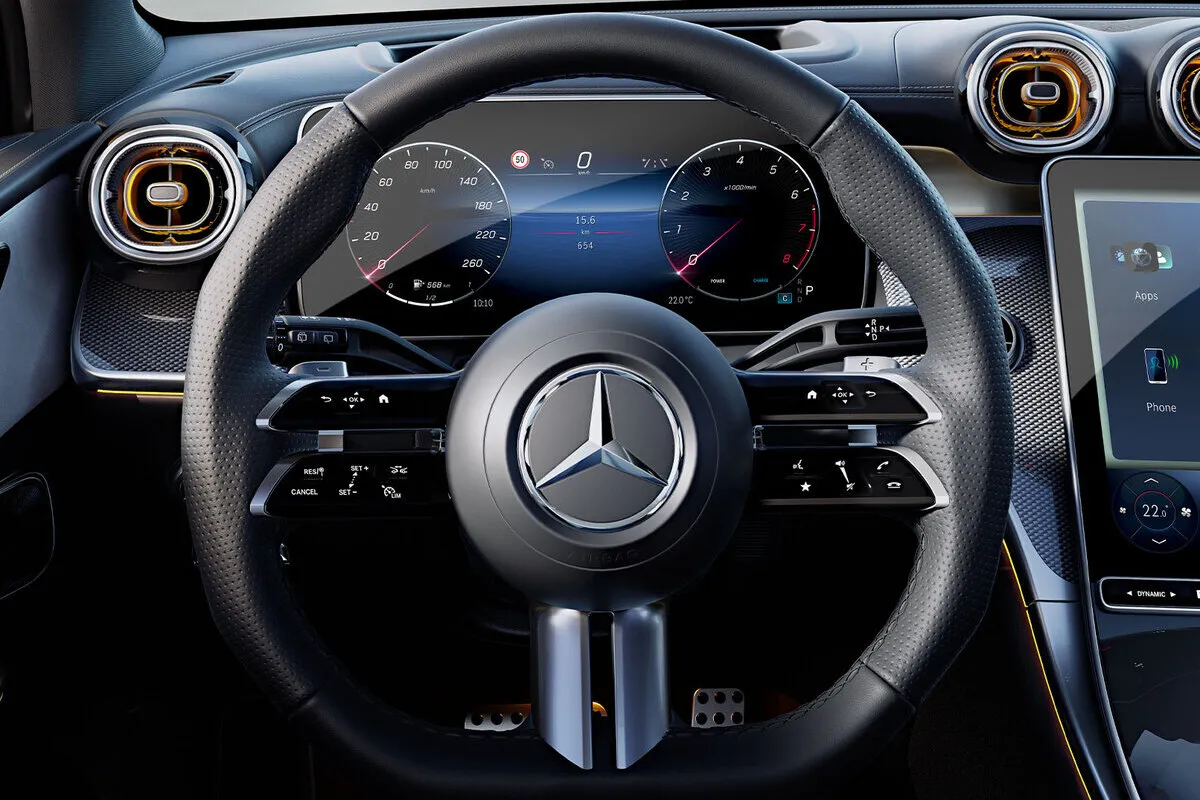 - AMG Line: стайлінг AMG, решітка радіатора в А-подібній формі з візерунком Mercedes-Benz, 19-дюймові диски у 5-спицевому дизайні. Сидіння із спортивною графікою та оновленим підголівником, педалі AMG, багатофункціональне спортивне рульове колесо зі шкіри наппа.