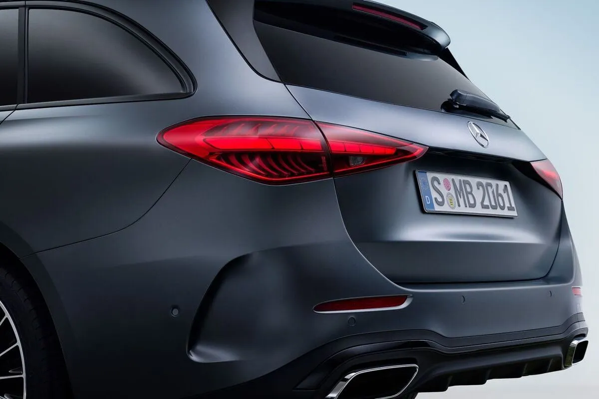 Широка постава, зоряна решітка та двосекційні задні ліхтарі створюють впізнаваний силует. Рейлінги підкреслюють утилітарність, не жертвуючи стилем, а вивірені пропорції додають динаміки навіть у статиці. C-Class Estate виглядає свіжо та переконливо як у діловому, так і у сімейному сценарії.