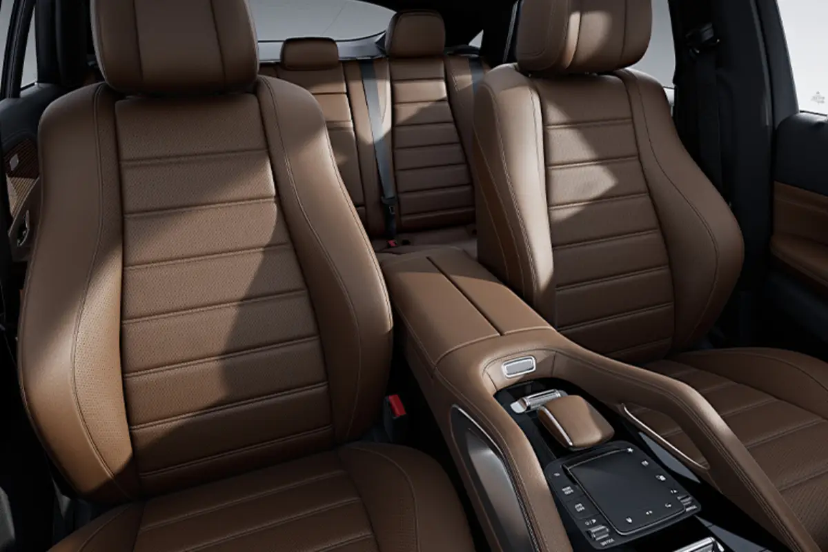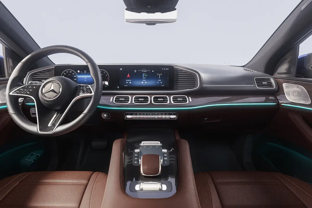 GLE купе демонструє спортивно-елегантний дизайн: пласке лобове скло, характерна похила лінія даху та атлетична задня частина працюють на єдиний потужний образ. З будь-якого ракурсу автомобіль виглядає водночас стрімко й вишукано, підкреслюючи впевнені пропорції та естетику, яка притягує погляди.